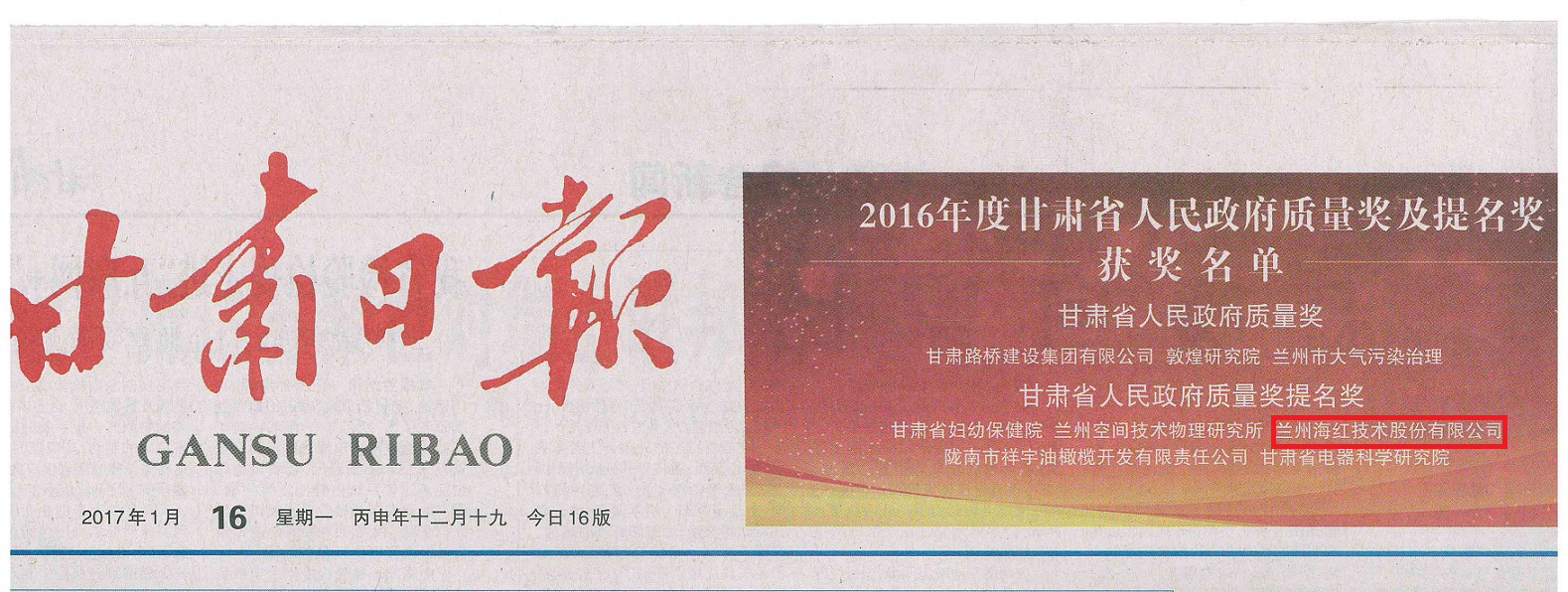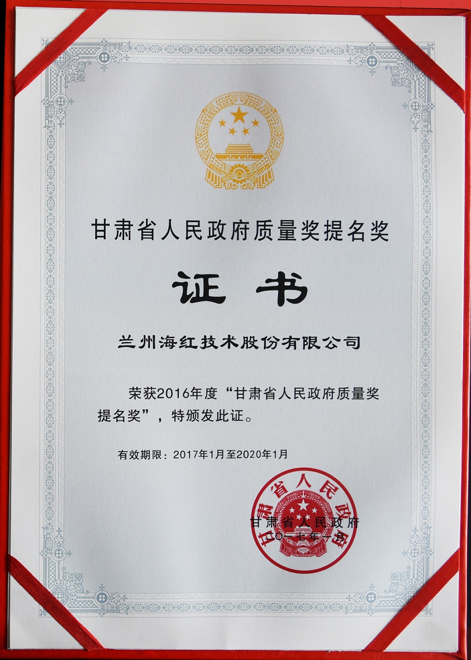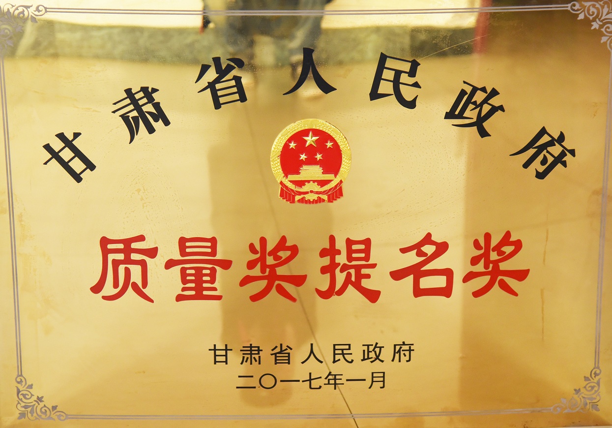 我公司榮獲2016年度“甘肅省人民政府質(zhì)量獎(jiǎng)提名獎(jiǎng)”