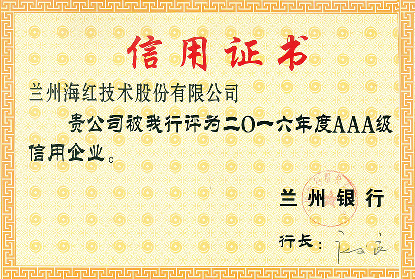 我公司被蘭州銀行評為二零一六年度AAA級信用企業(客戶)