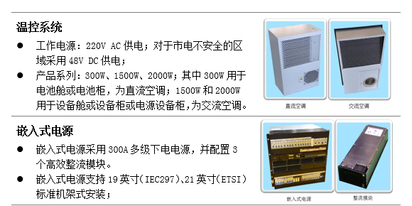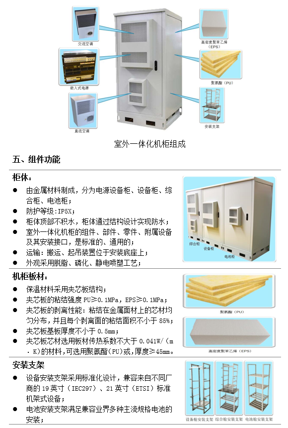 室外一體化機柜由柜體、機柜板材、安裝支架、溫控系統、嵌入式電源組成。